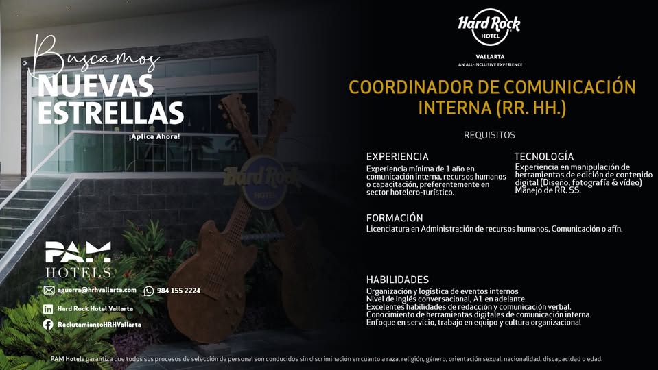 Hard Rock busca Coordinadora de comunicación