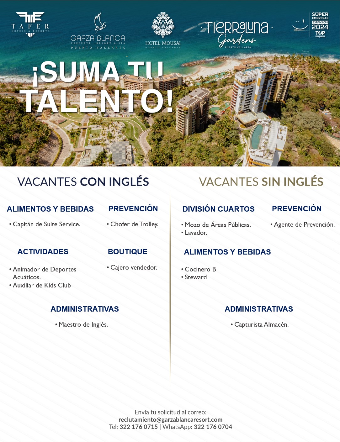 ¡Casa Velas está contratando! Mira las vacantes y envía tu CV