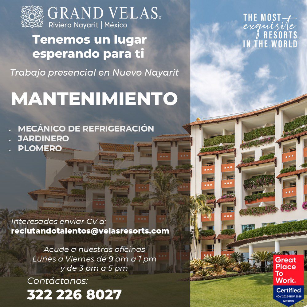 Grand Velas Riviera Nayarit busca personal de Mantenimiento