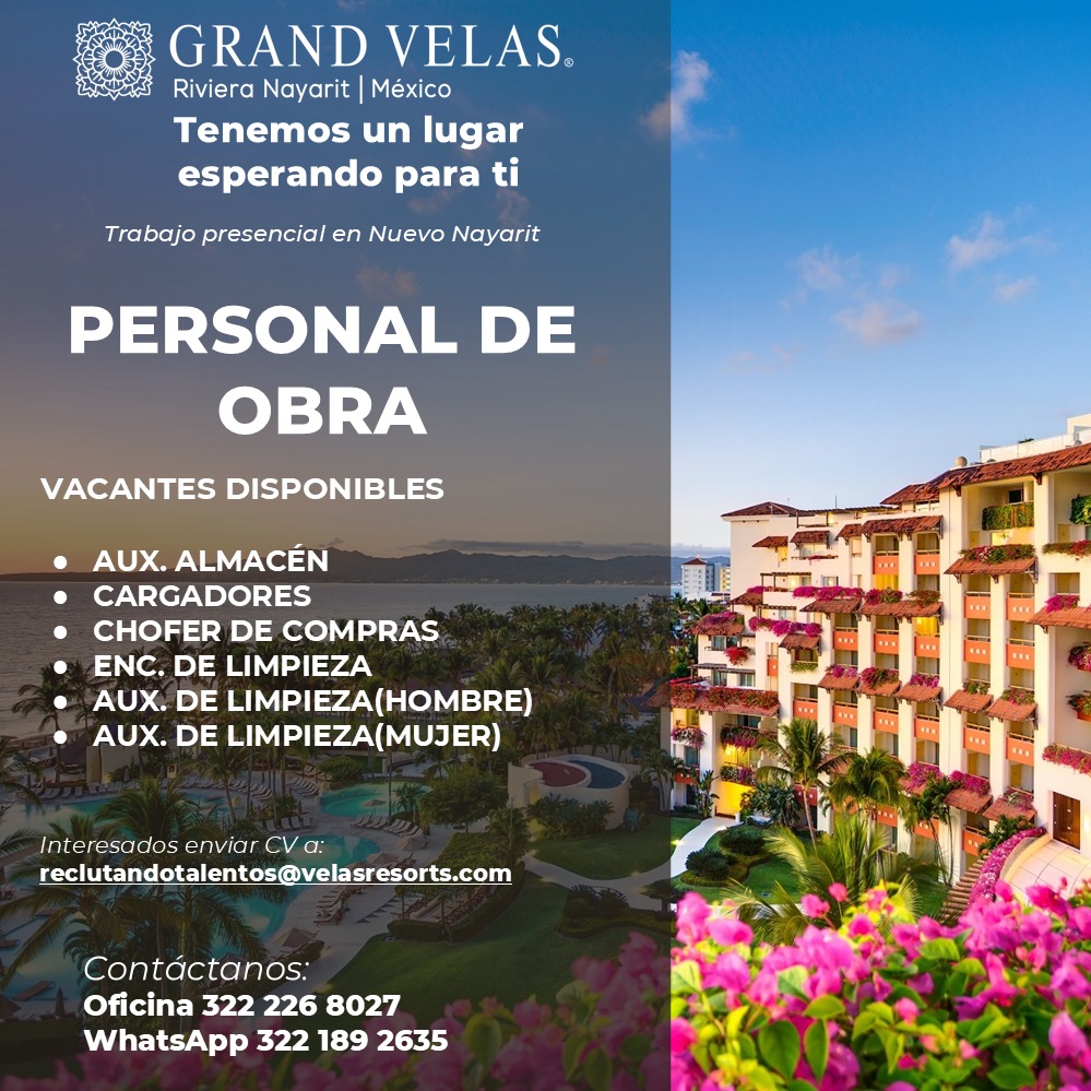 Grand Velas busca personal de obras