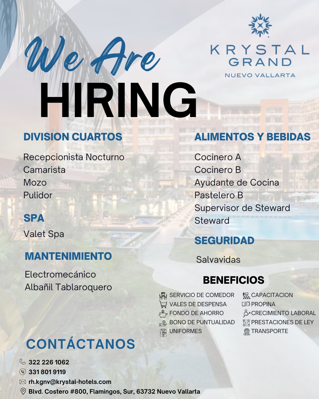 Krystal Grand Nuevo Vallarta te comparte las vacantes ideales para ti