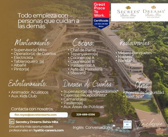 Checa las nuevas vacantes de Secrets & Dreams Bahía Mita