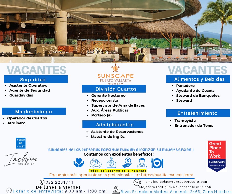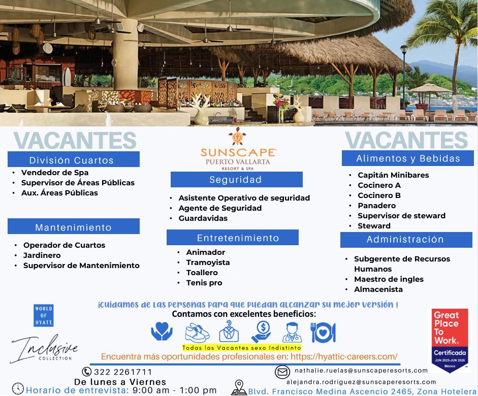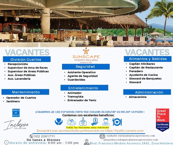 Nuevas vacantes en Sunscape Puerto Vallarta
