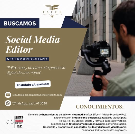 Garza Blanca Puerto Vallarta busca personal para Creación de contenido 12/16/2025 Garza Blanca Puerto Vallarta busca los siguientes puestos: Content Manager, Editor Multimedia y Social Media Editor. Leer más »