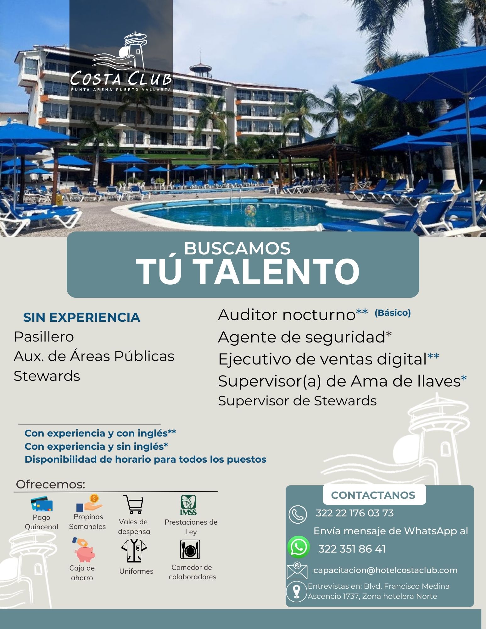 Descubre las vacantes disponibles de Costa Club Puerto Vallarta